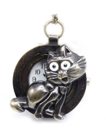 Bad Kitty Cat Pendant Watch Antique Brass Finish with Long Chain Included Reviews