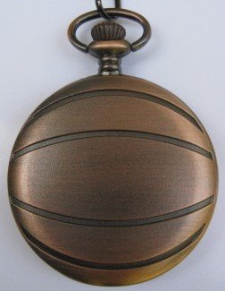 Shoot the winning basket with the original Collectible Basketball pocket watch. This Handsome timepiece features the PC21s quartz movement. Roman numerals. Hour minute and second hands. Case is finished in antique bronze with 15 inch matching chain.