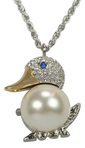 Pedre Women's Two-Tone Crystal Adorned Faux Pearl Duck Pendant Watch with Rope Neck Chain # 8530TX Reviews