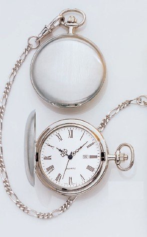 - Silver Tone Quartz Engraveable Pocket Watch with Day of Month.